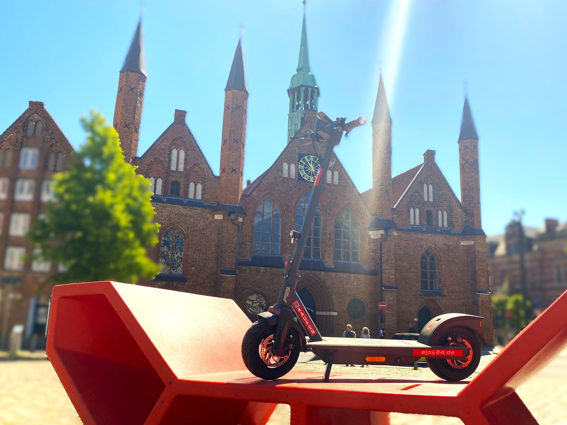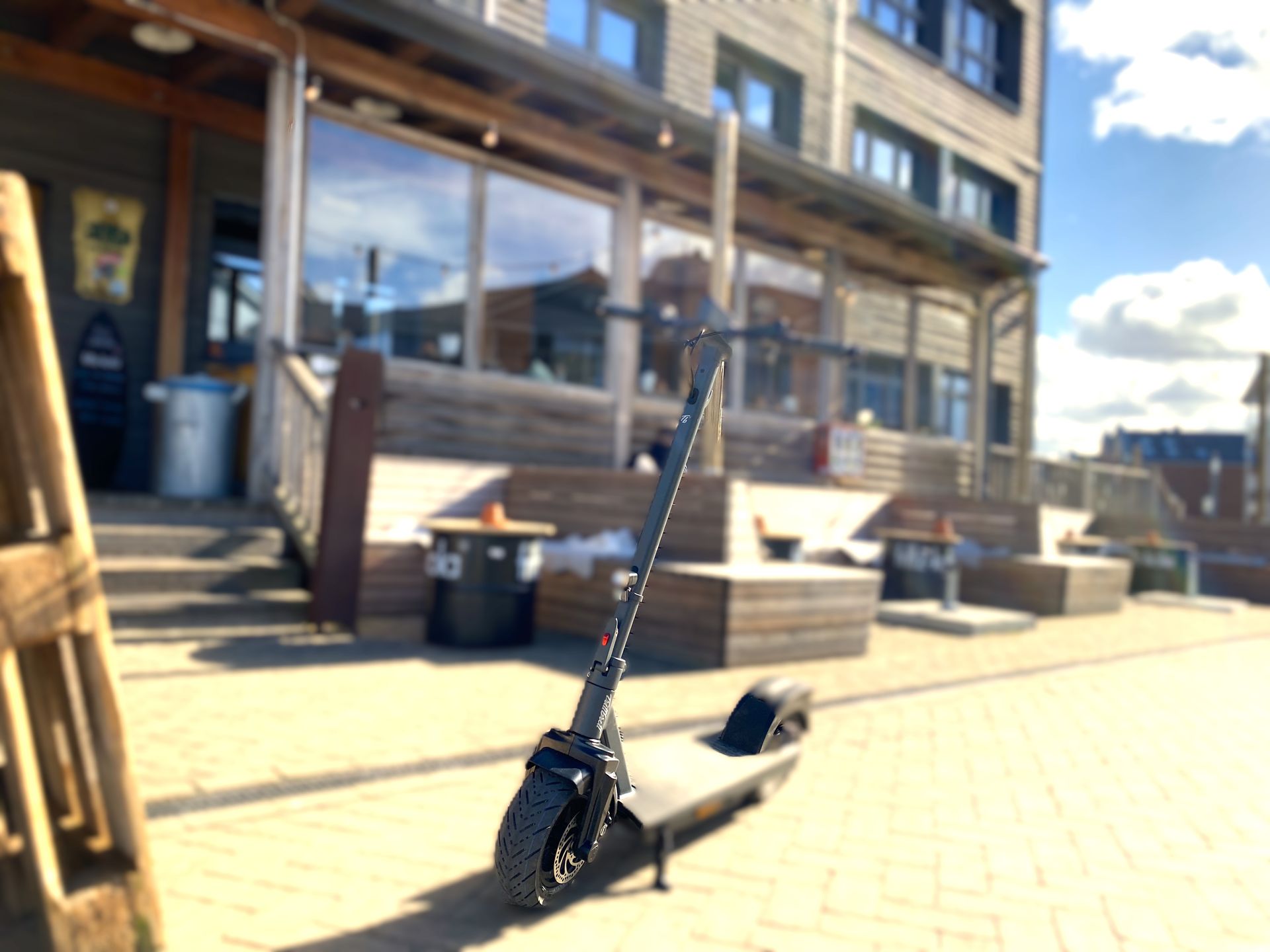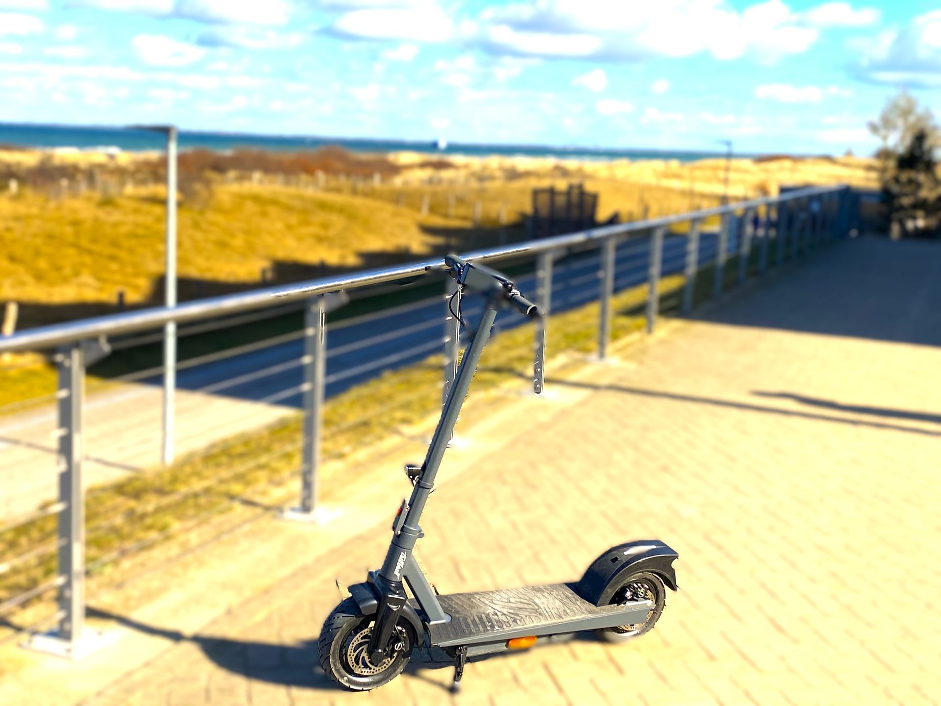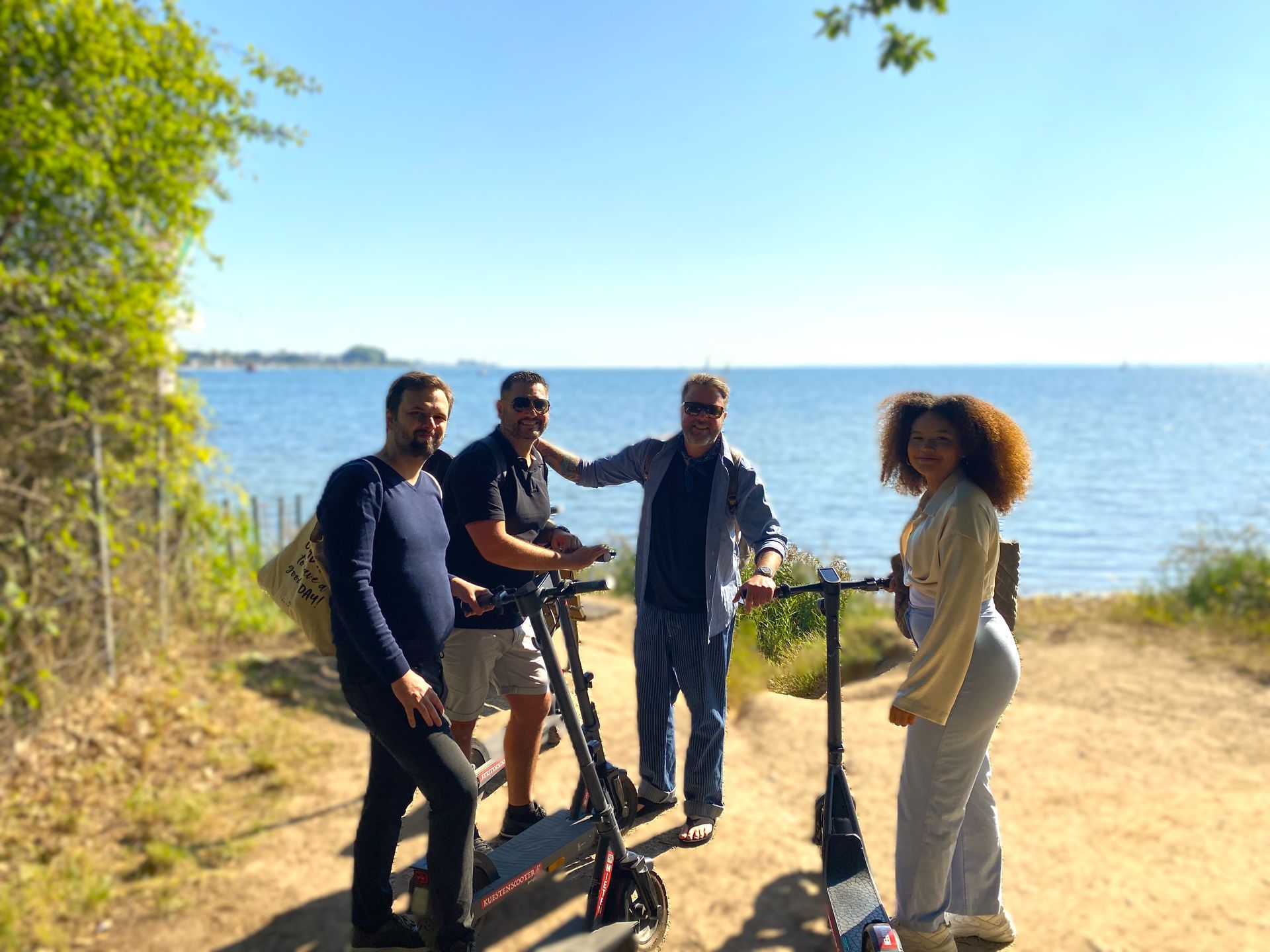 Wir starteten an unserem maritimen Hotel am Hafen in Neustadt und fuhren entlang der Steilküste über Sierksdorf und Haffkrug mit erstem Zwischenstopp in Scharbeutz. Anfangs mussten wir uns erst einmal an den oft holprigen Untergrund an der Steilküste gewöhnen, aber nach ein paar Minuten fuhren auch meine Kollegen, welche vorher noch nie auf einem E-Scooter standen, einigermaßen sicher. Der traumhafte Ausblick von der Steilküste ließ uns die Strapazen schnell vergessen.